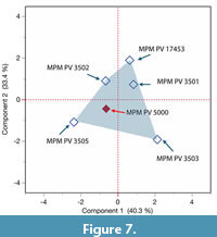 In view of the debate about the identity of MPM-PV 5000, whether it is a distinct taxon (Killikaike blakei, Tejedor et al., 2006) or rather belongs with other specimens of Homunculus patagonicus, we undertook a principal components analysis (PCA) of nine dimensions of the palate and orbits shared by MPM-PV 5000 and other specimens (Table 3: Facial Height, Orbit Height, Orbit Breadth, Interorbital Breadth, Orbital Convergence, Palate Length, Palate Breadth, Pre-orbital Rostral Length, and Interorbital Breadth). The first two components account for 73.7% of the variance (Figure 7). Taken together, these data show that the shape of preserved parts of the face, palate, and orbits of MPM-PV 5000 fit within the known range of five other specimens of Homunculus patagonicus.