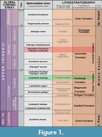 Spinicaudatan “conchostracans” or clam shrimps are among the most valuable index fossils in the non-marine strata of the Triassic in the Central European Basin (earlier termed the “Germanic Basin”). A biostratigraphic framework for the otherwise barely subdividable Keuper beds of this basin has been attempted and established by a number of publications by Heinz Kozur (e.g., Kozur and Mock, 1993; Kozur and Weems, 2007, 2010; Kozur et al., 2013). Not surprisingly, the pioneerig work of Kozur required minor to moderate amendments in terms of adjusted ranges and taxonomic corrections of taxa.